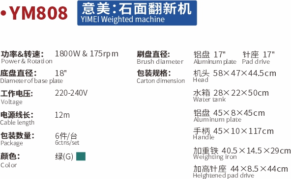 (3)YM808具有洗地、洗地毯、地面晶面處理、大理石翻新及樓梯清洗等功能。
