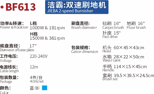 -具有洗地、洗地毯、起蠟、低速拋光等四大功能,能同時(shí)滿(mǎn)足顧客的多種清潔需要。